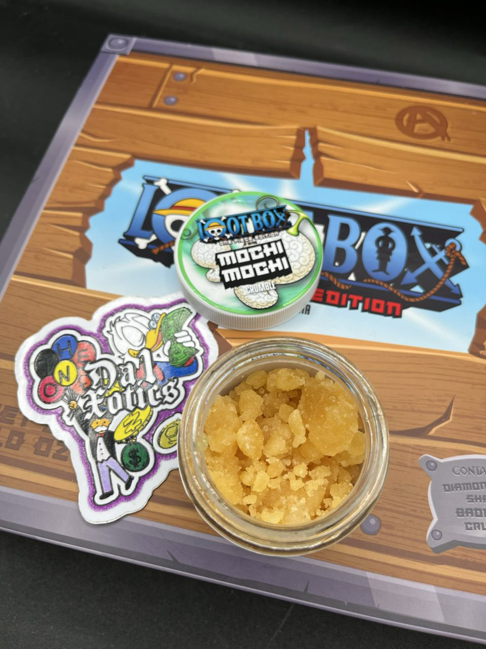 The Loot Box One Piece Edition is a limited-run, One Piece‑themed cannabis concentrate collection from Arcadia Extracts. It includes high‑potency options like shatter, live resin, diamonds, batter/badder, crumble, and sugar, themed for anime fans and cannabis connoisseurs alike.