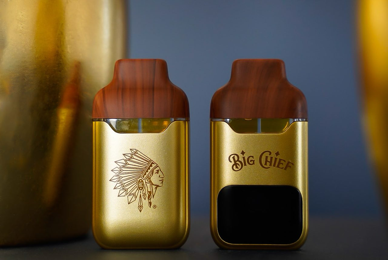 - A dual‑chamber disposable vape featuring two separate 2 g tanks, each filled with Big Chief’s signature liquid diamonds extract—a potent blend of ultra-purified THCA crystals combined with cannabis-derived terpenes