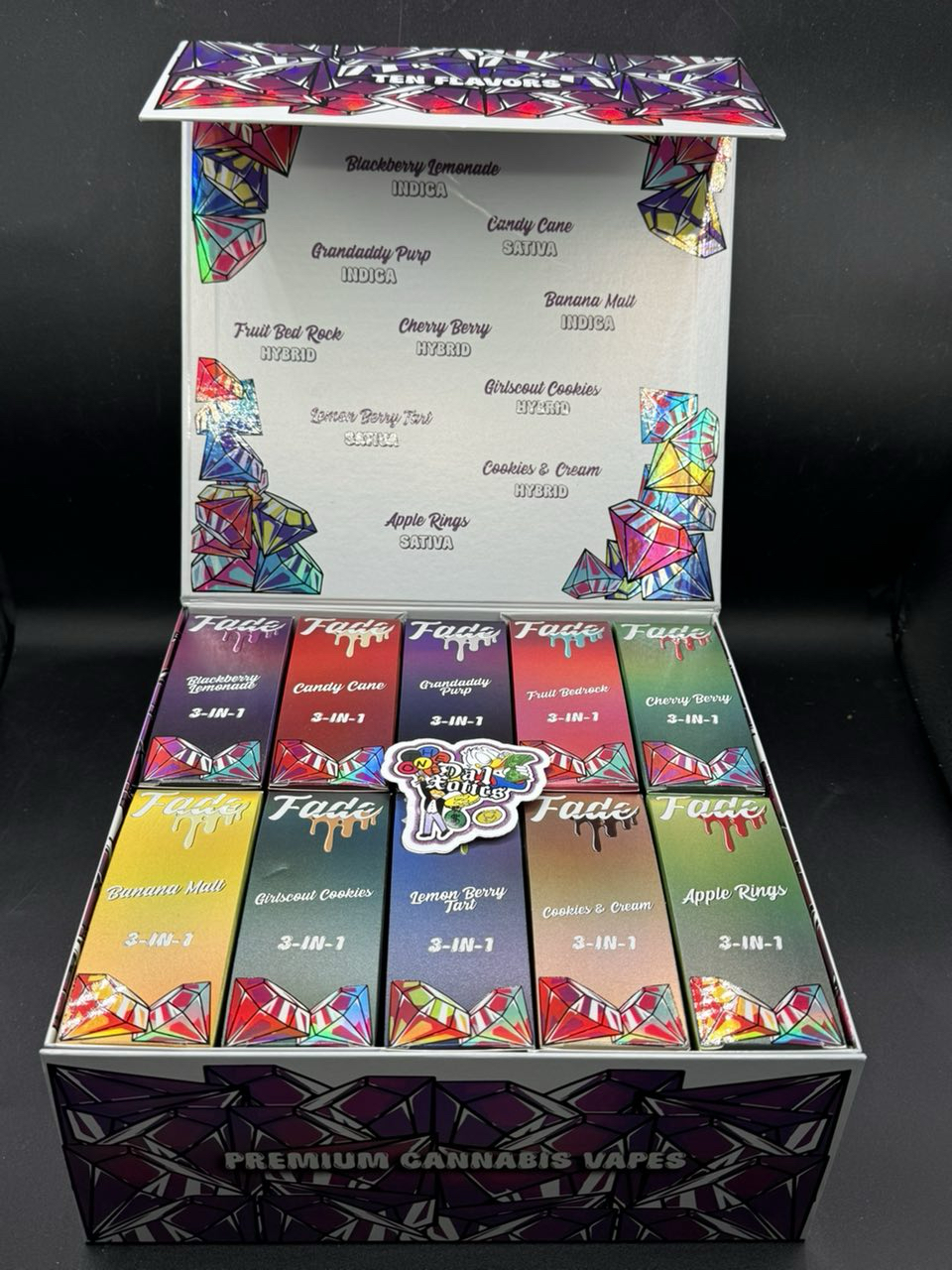 Popular strains include: Gelato, Lemon Cherry Gelato, Blue Dream, Gushers, and Wedding Cake.