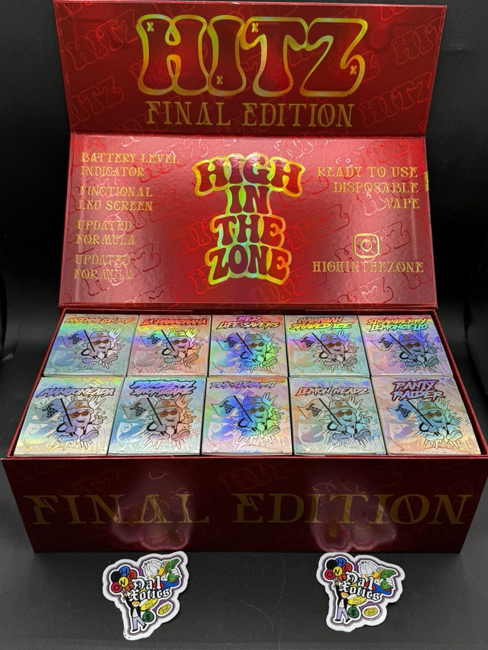The Hitz Final Edition is a farewell to one of the most popular disposable lines in the market. It features upgraded hardware, enhanced oil purity, and more refined flavor profiles, making it the most advanced and flavorful Hitz device to date. Once it’s gone, it’s gone—cementing its status as a collector’s vape for enthusiasts.