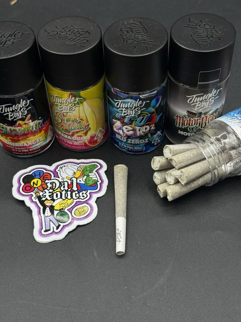 Jungle Boys pre-rolls come in individual 0.7 g joints, with typical packaging in 5‑packs (3.5 g total) or 10‑packs (7 g total) - Origin & Quality