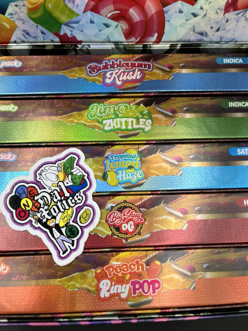 - Packaging often lists nostalgic candy flavors such as Cherry Runtz, Candy Cloud 9, Peach Ring Pop, Purple Jolly Rancher, Nitro Taffy, Red Apple etc.